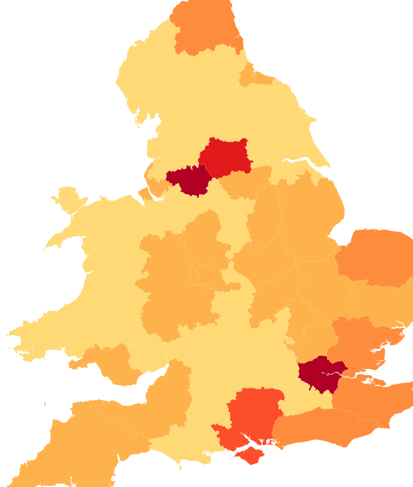 The map below illustrates drug seizures by region, based on Home Office data. To explore detailed figures for your area, double-click on the map or click here to view the full-page version.