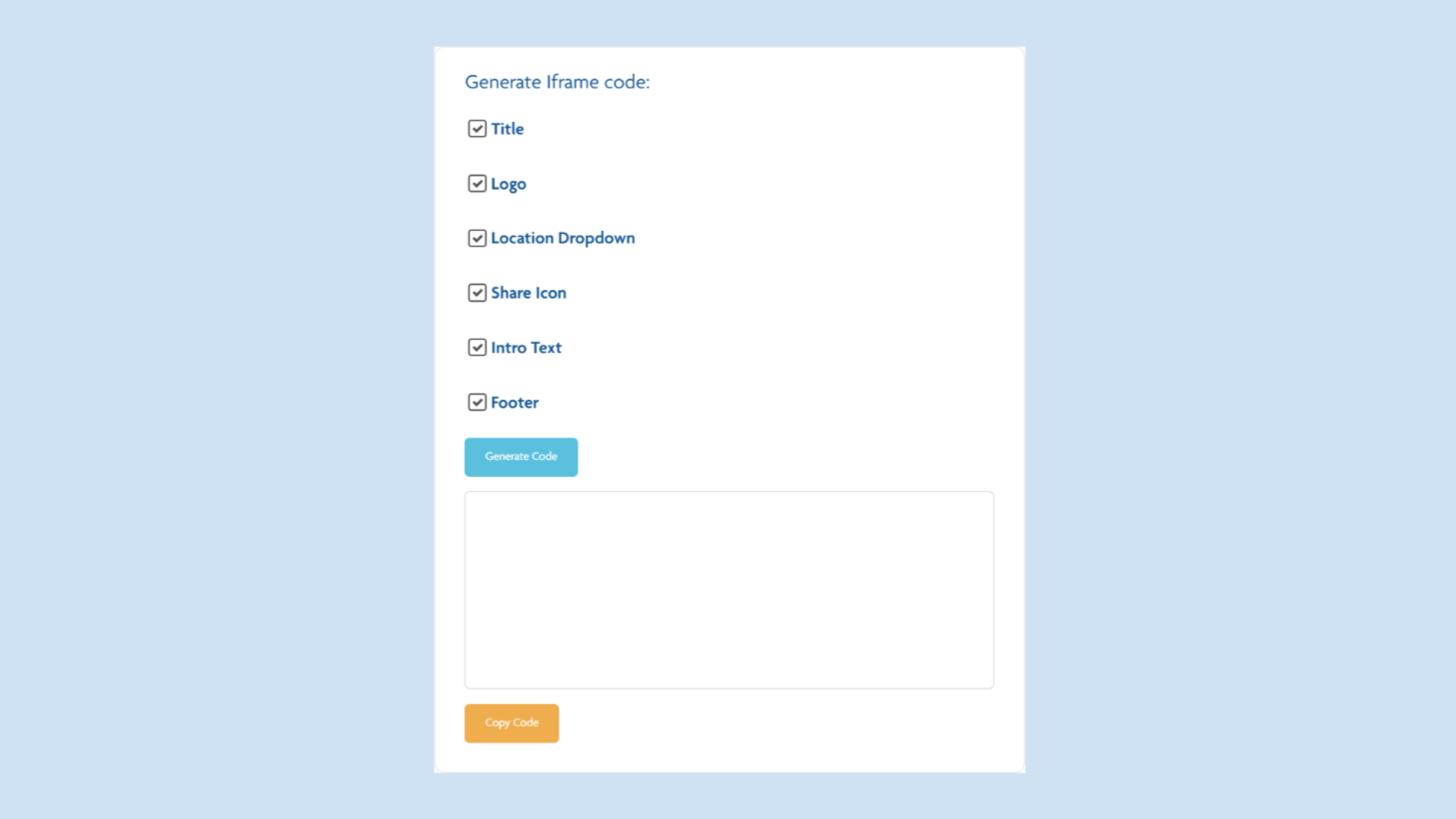Our customisable iframes enable you to select the various elements of the stand alone application when embedding it into a website, so it can fit the page in the way you want it to.