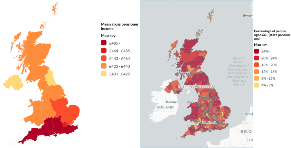 Figures from the Department for Work and Pensions reveal that the mean gross income received by pensioners, in 2021/22 to 2023/24, is highest in the South East region, at £506 per week, closely followed by South West (£491pw).