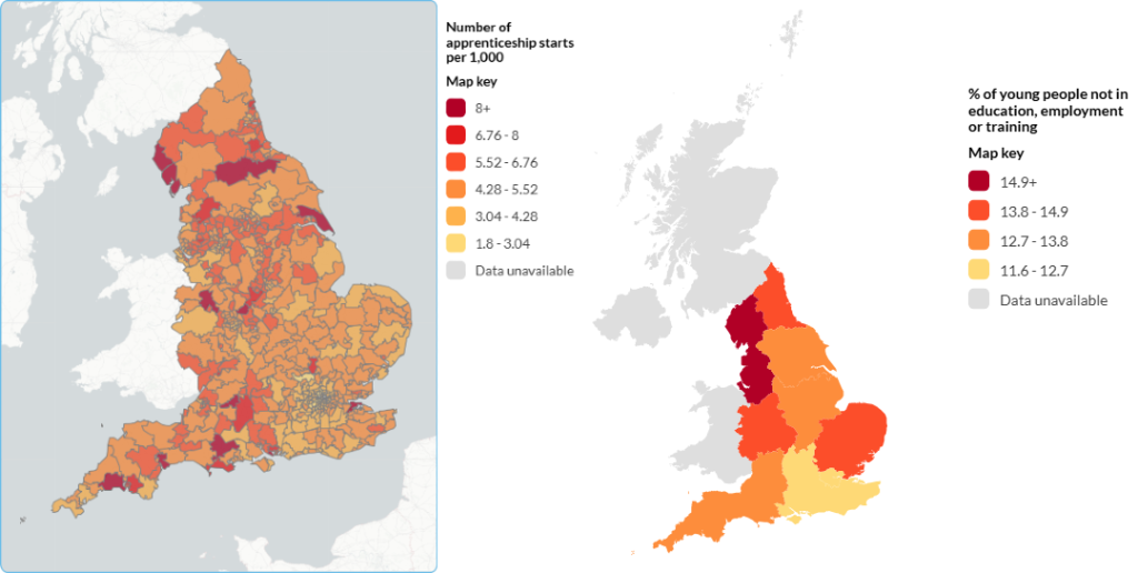 Additional figures on young people not in education, employment and training (NEET), reveal the North West as the region most in need of reforms to upskill a young population, with 16% of 16-24 year olds registered as NEET.